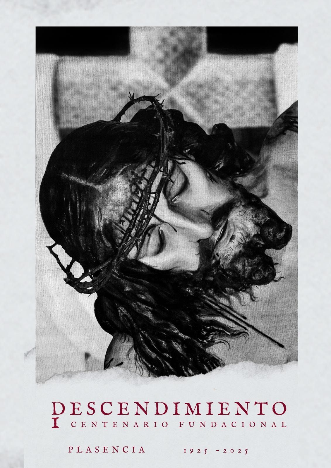 Ayer, en el acto inaugural del centenario de nuestra cofradía, tuvo lugar la presentación oficial del cartel conmemorativo de esta efeméride. Se trata de una obra original de Juan Miguel Alcalá de 70 x 100 cm realizada con la técnica de dibujo a carboncillo. En este dibujo podemos contemplar en primer término el rostro del Cristo del Descendimiento con su corona de espinas. En el fondo de la imagen podemos contemplar una parte de la Cruz latina en realce que forma parte del estandarte corporativo de nuestra cofradía. Queremos agradecer al autor esta maravillosa obra pictórica que sin duda formará parte del patrimonio de nuestra cofradía y de la Semana Santa de nuestra ciudad.