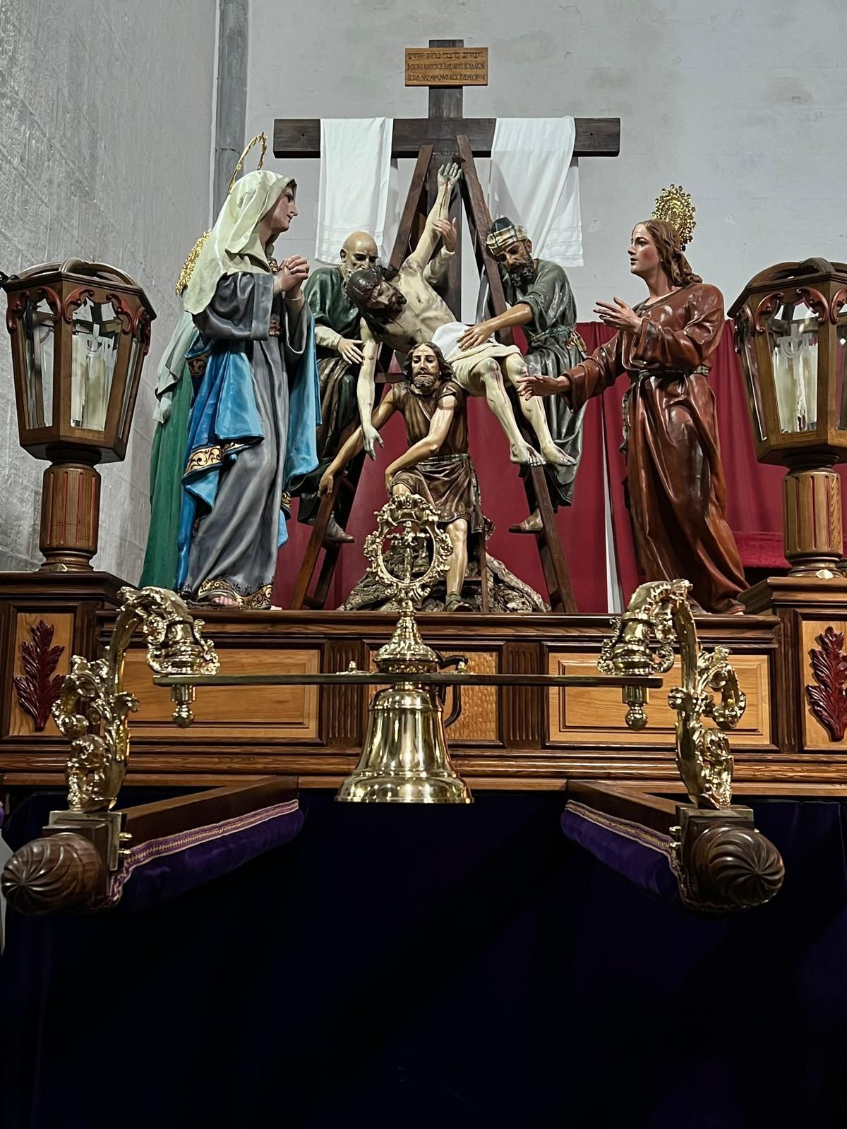 Hoy, queremos dar a conocer una de las principales novedades que estrenaremos en la estación de penitencia del Viernes Santo. Se ha llevado a cabo la sustitución de los llamadores en cada uno de los tres pasos. En en caso del Santísimo Cristo de Las Siete Palabras y la Virgen de Las Angustias se ha optado por colocar un brazo de campana realizado en bronce fundido bañado en oro rematado en la parte superior con el emblema de la cofradía flanqueado por una orla de nuevo diseño. En el paso de misterio del Descendimiento de la Cruz hemos colocado un arco de campana de doble brazo fundido en bronce y co baño en oro viejo, rematado de la misma forma que los anteriores. Además de los llamadores, también estrenaremos los martillos que serán portados por los jefes de paso. Con la adquisición de estas piezas de orfebrería realizadas por Paula Orfebres (Lucena, Córdoba) conseguiremos mayor sonoridad y una notable mejora en la estética de los tres pasos.