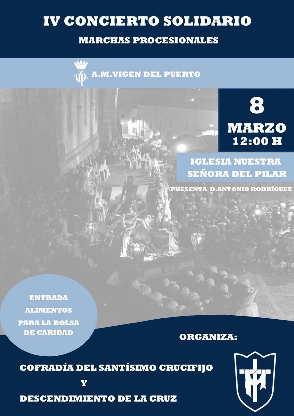 El Domingo día 8 de Marzo a partir de las 12:00 horas se celebrará en la Parroquia de Nuestra Señora del Pilar un concierto de marchas procesionales, organizado por el grupo joven de la cofradía, cuya entrada son alimentos que irán destinados a la bolsa de caridad de nuestra corporación.