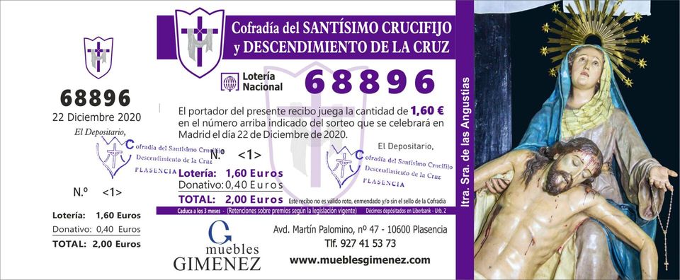 La Cofradía del Descendimiento pone a la venta las participaciones correspondientes al sorteo de lotería de Navidad del año 2020.