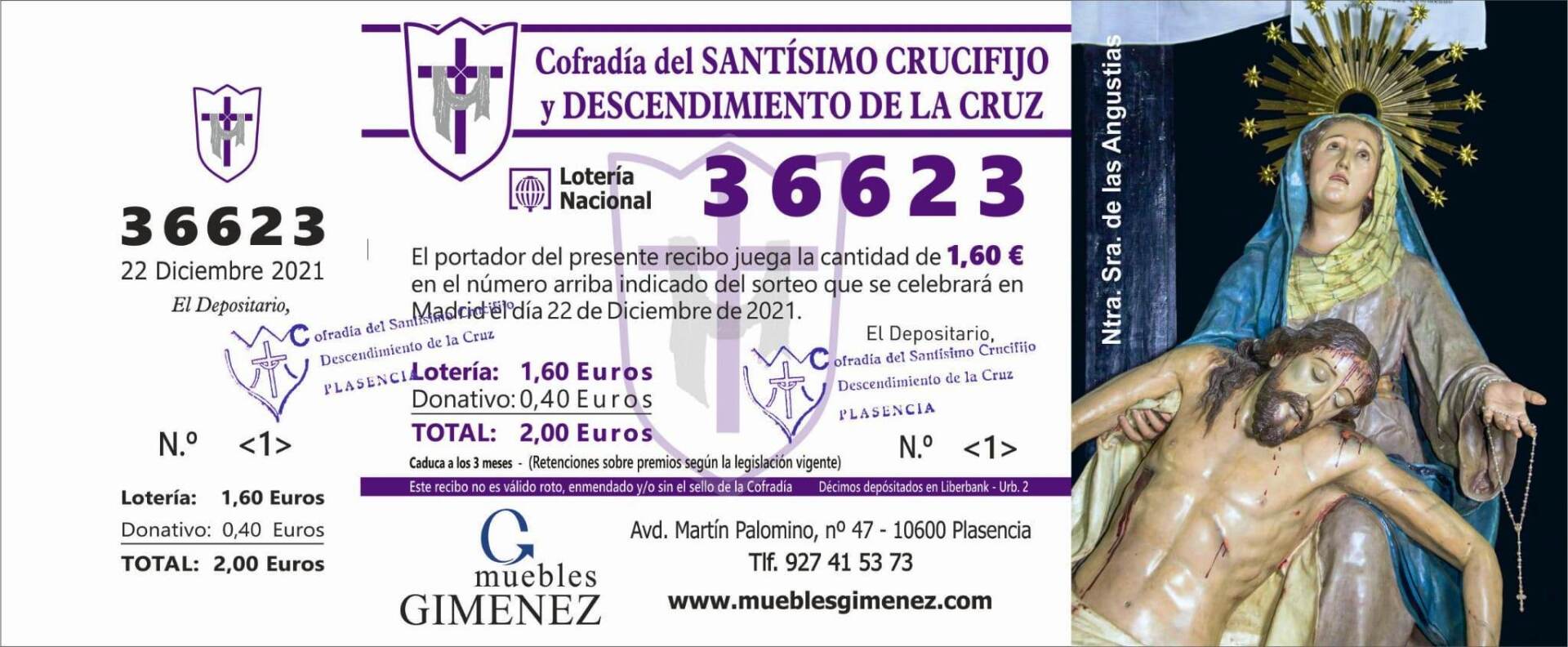 La cofradía ha puesto a la venta las participaciones correspondientes al sorteo extraordinario de la lotería de navidad que se celebrará el día 22 de Diciembre de 2021.